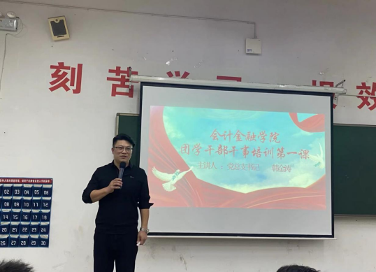 韩书记明确团学组织“服务同学、锻炼自我、助力学院发展”宗旨,强调其是学生成长、丰富校园文化、协助学院工作的重要载体。他引导干部干事思考入团学意义,鼓励摒弃功利心,以“在其位、谋其政、尽其责”态度实现自我成长。培训以互动提问、场景模拟等方式开展,现场氛围热烈,大家认真记录、积极回应,对团学工作认知更清晰。