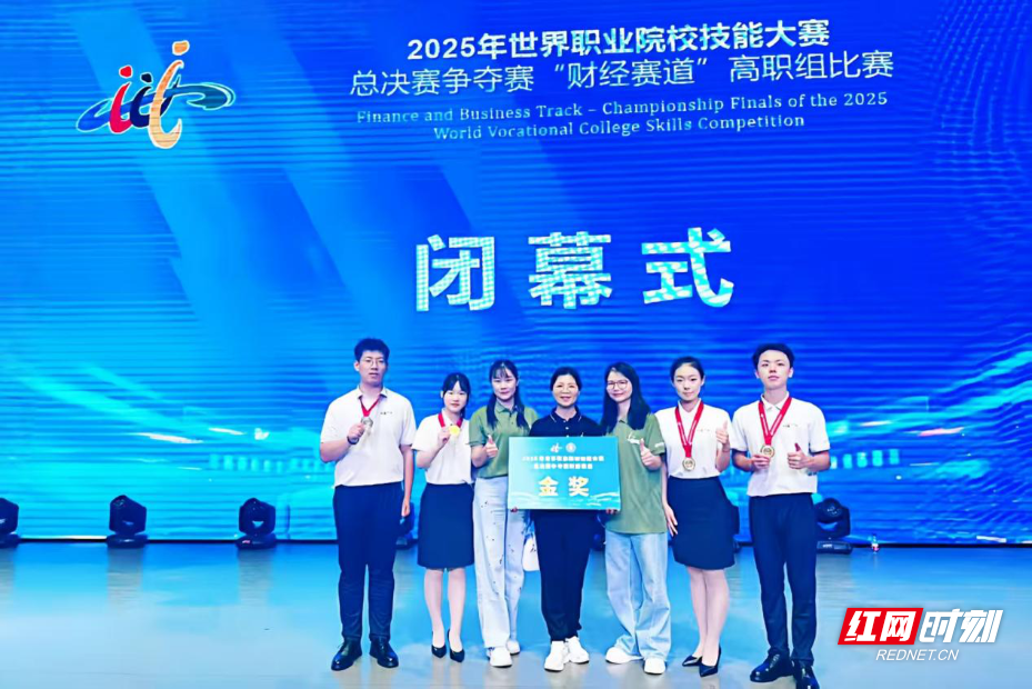 在指导老师袁美、冯云的悉心指导下,贾志伟与团队成员刘蕙、莫欣、石佳冉一起攻克难关。2025年8月,捷报传来——团队荣获世界职业院校技能大赛总决赛争夺赛(财经赛道)金奖,实现了从“学渣”到“世界冠军”的完美逆袭。
