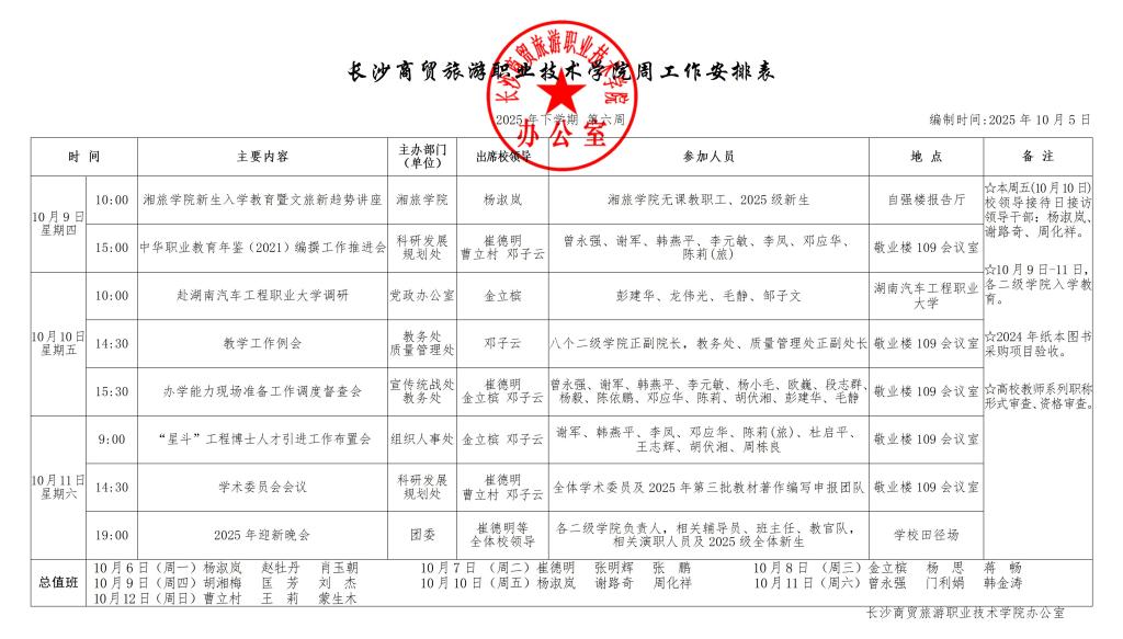 2025年下学期第六周工作安排表